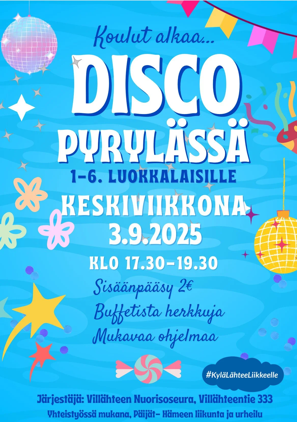 ALAKOULUIKÄISTEN DISCO PYRYLÄSSÄ